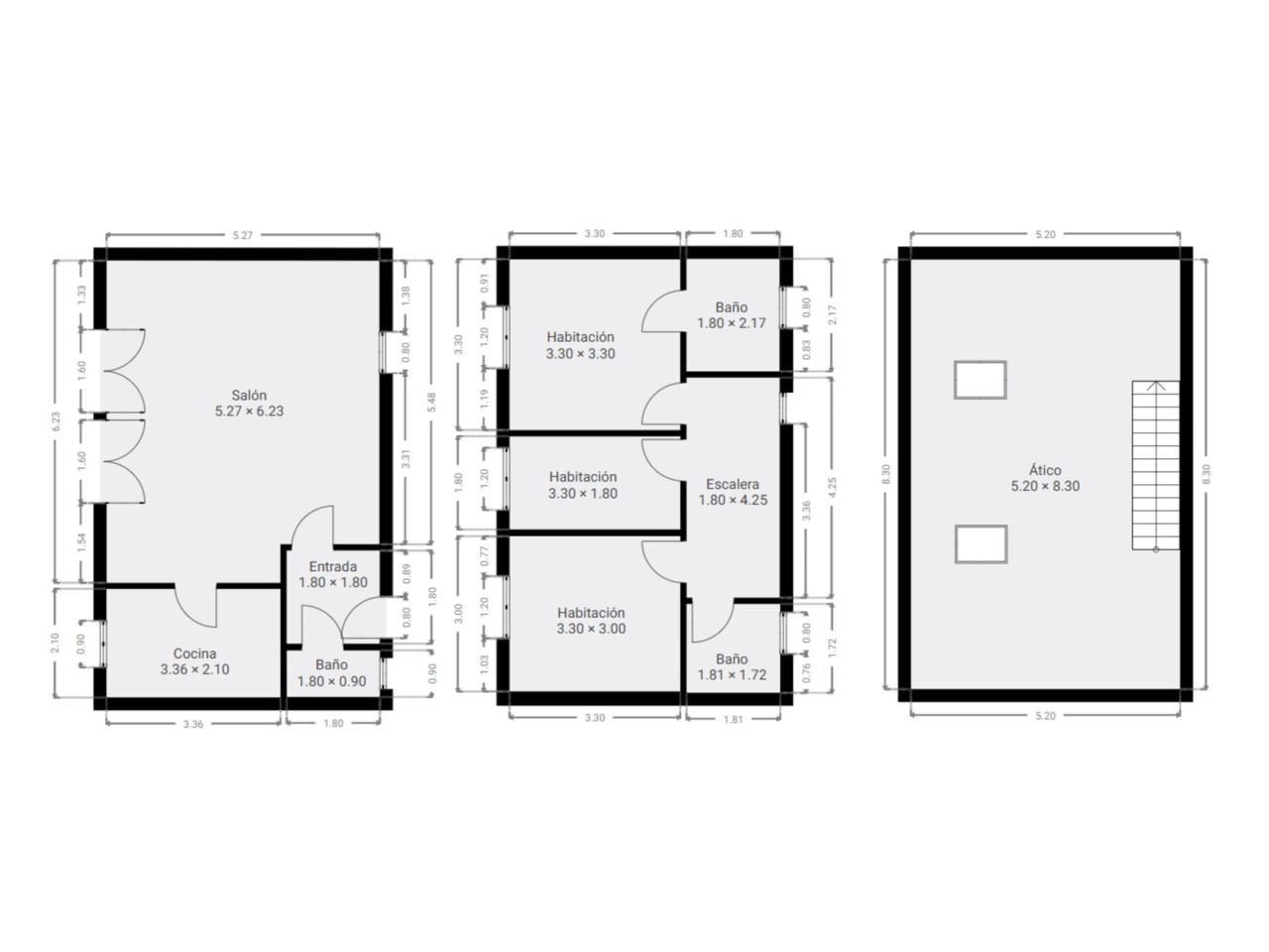 En la primera planta se distribuyen las habitaciones y los baños, ofreciendo espacios cómodos y bien aprovechados.