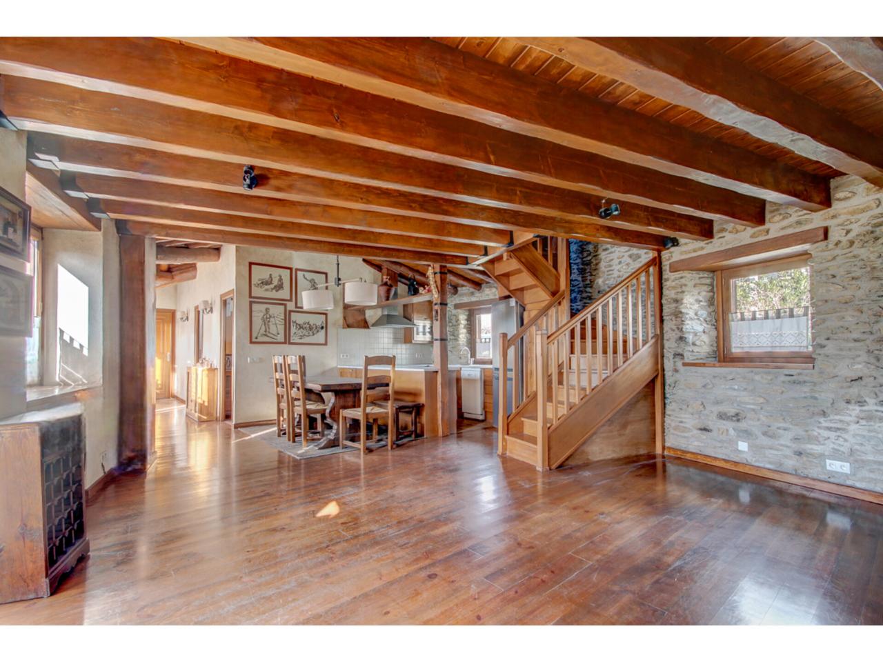 En pleno casco antiguo de Osseja, uno de los pueblos con más encanto de la Cerdaña Francesa, se encuentra este luminoso ático dúplex de 120 m² construidos (105 m² útiles), situado en un edificio del año 2005. Una vivienda única por su amplitud, orientación y carácter.
